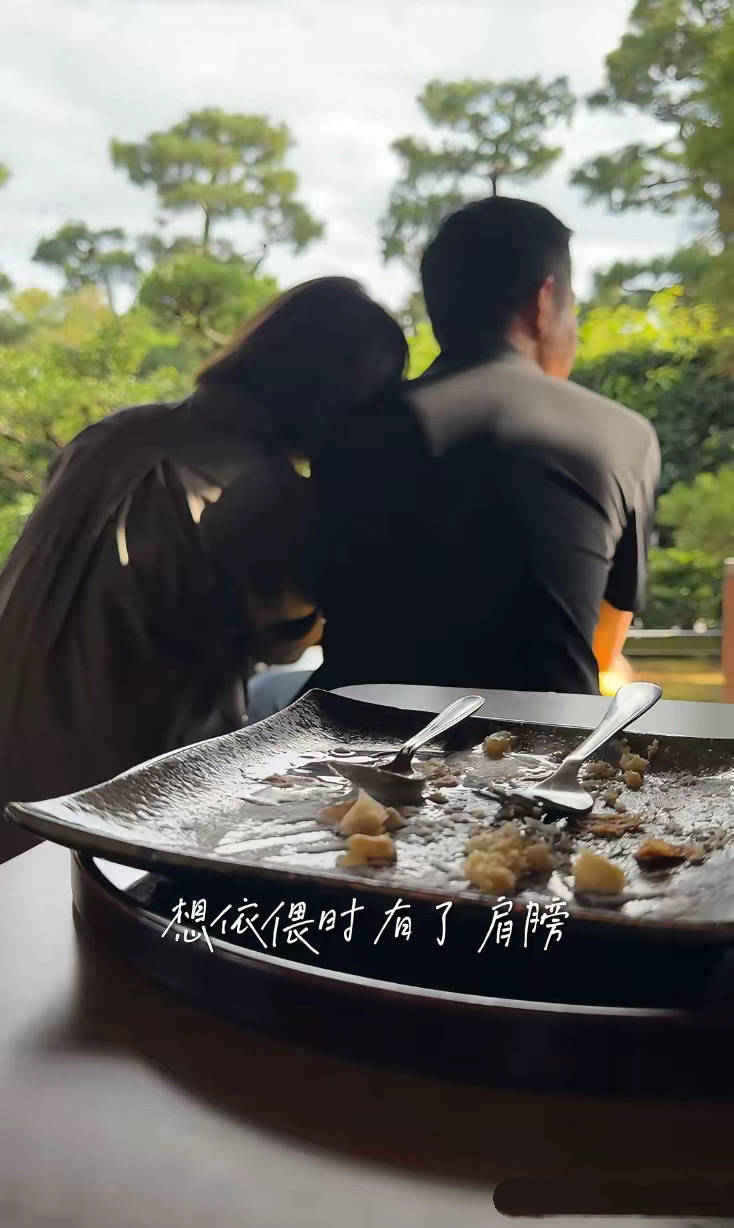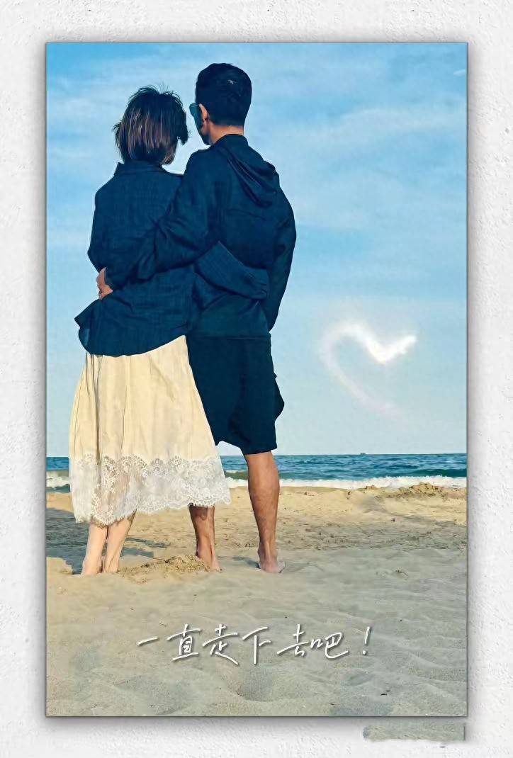 看背影,王冠的老公挺年轻的,身材挺拔、肌肉结实,靠着老公的后背很有安全感。